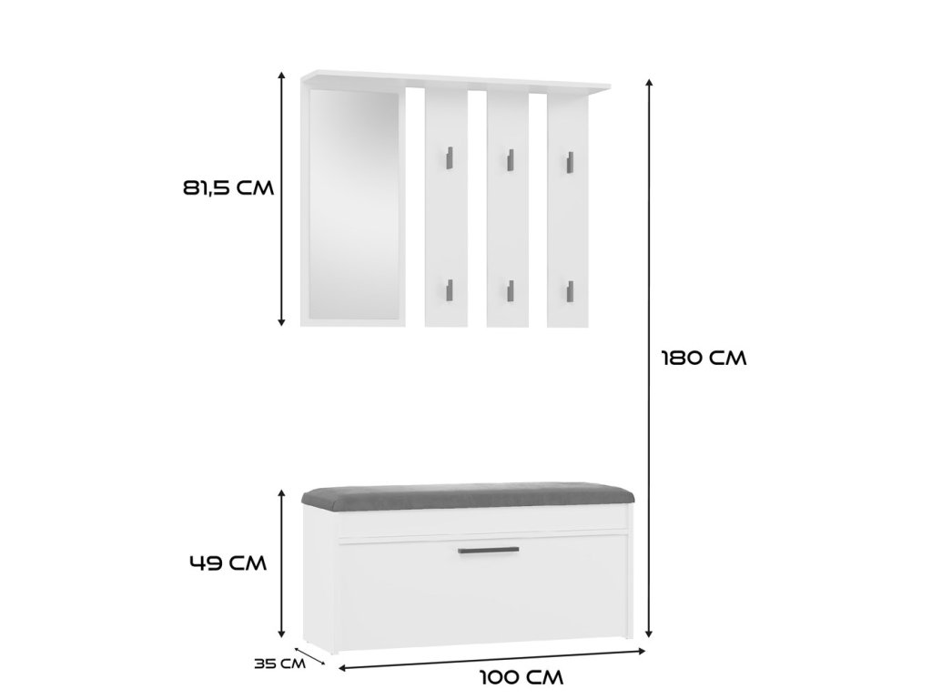 Nadčasová předsíňová sestava Pargas splní očekávání všech, kteří oceňují kombinaci elegance a praktičnosti. Skvěle zapadne do interiérů s minimalistickým či skandinávským charakterem. Sestava se skládá z věšáku se zrcadlem a pohodlného botníku s čalouněným sedákem s výklopnými dvířky. Je vyroben z kvalitního lamina, které je snadno udržovatelné a odolné proti oděru, dlouhou životnost nábytku zajišťují hrany zakončené ABS materiálem.