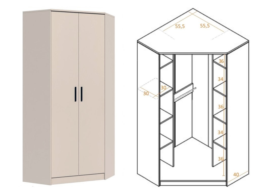 1x rohová skříň GRANT 08 - 195 x 91 x 91 cm