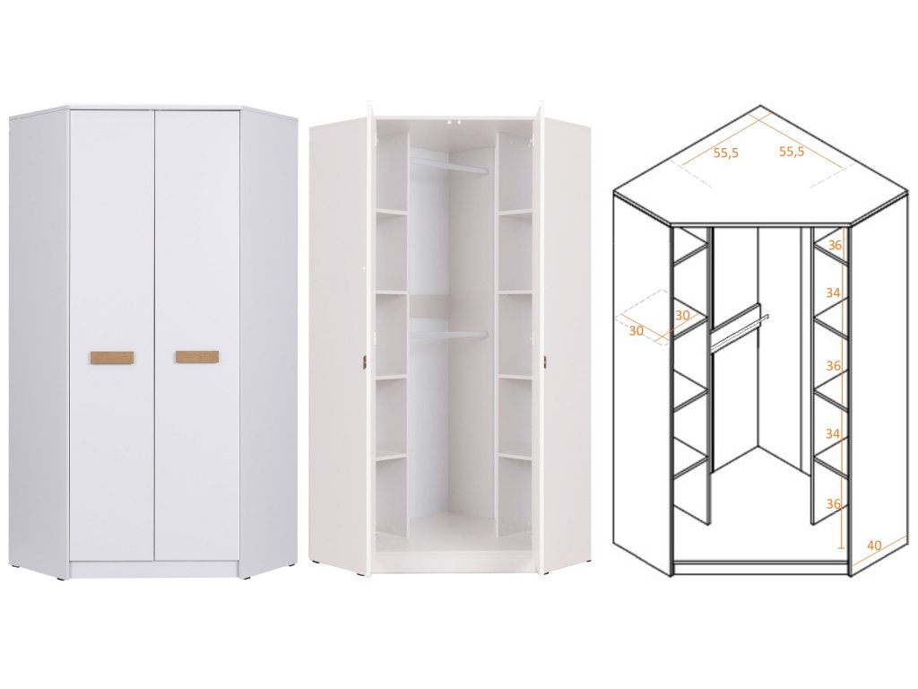 1x rohová skříň GRANT 08 - 195 x 91 x 91 cm