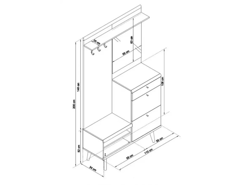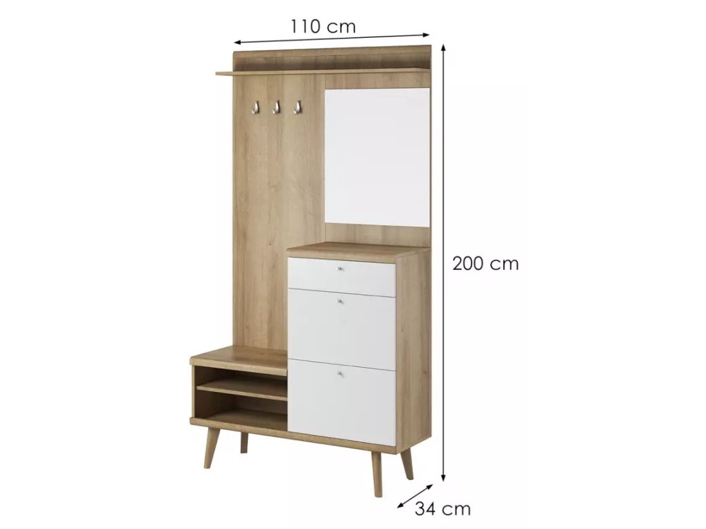 Předsíňová stěna: 110 x 200 x 34 cm