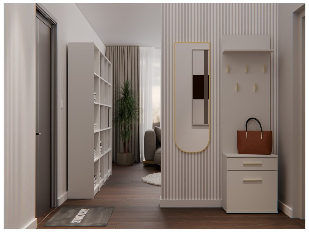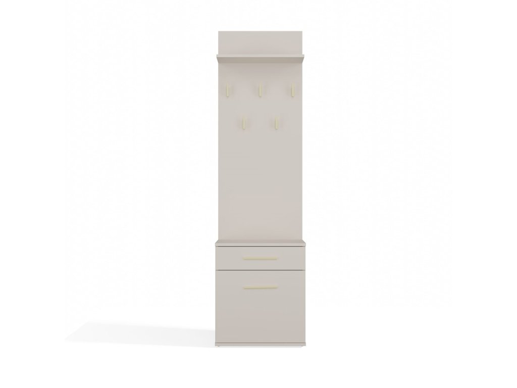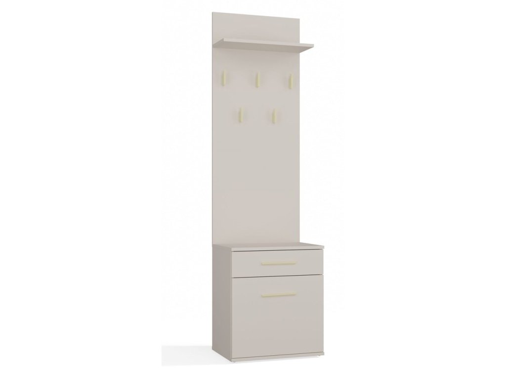 Předsíňová stěna Topaz v moderním stylu a trendy barvách splní očekávání všech, kteří ocení kombinaci jednoduchosti a elegance. Stěna obsahuje praktickou zásuvku a menší skříňku s možností montáže dvířek na levou nebo pravou stranu. Je vyrobena ze snadno udržovatelného lamina, hrany jsou zakončené vysoce odolným ABS materiálem.