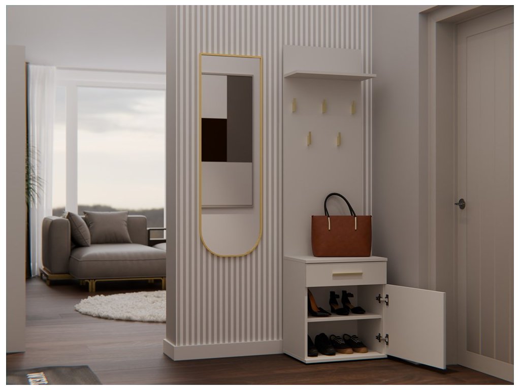 Nabízíme také Předsíňovou sestavu Topaz, která obsahuje předsíňovu stěnu v kombinaci se zrcadlovou šatní skříní.