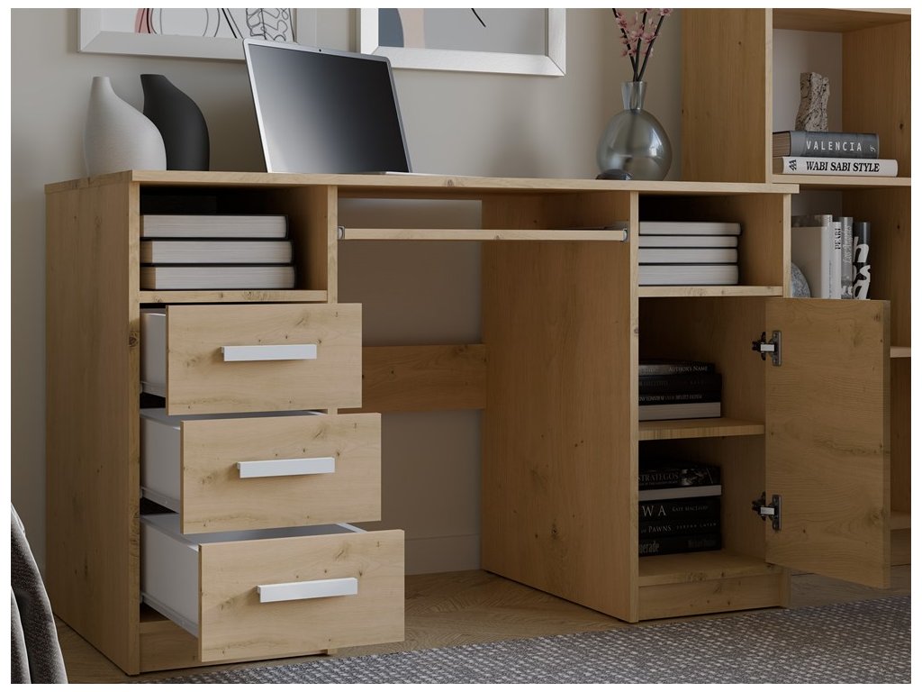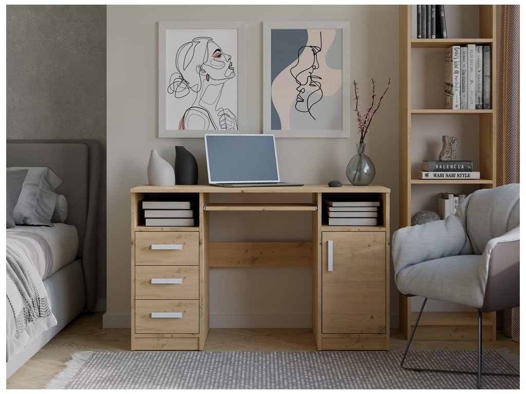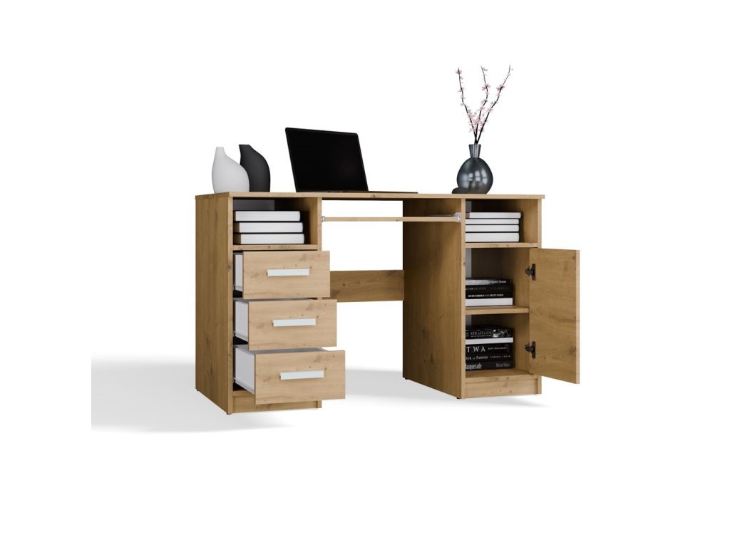 Psací stůl Delvin spojuje funkčnost s elegantním designem, který podtrhne atmosféru každé místnosti. Hodí se do moderních i minimalistických interiérů — od studentského pokoje až po domácí pracovnu. Je vyrobený z vysoce kvalitního a snadno udržovatelného lamina.