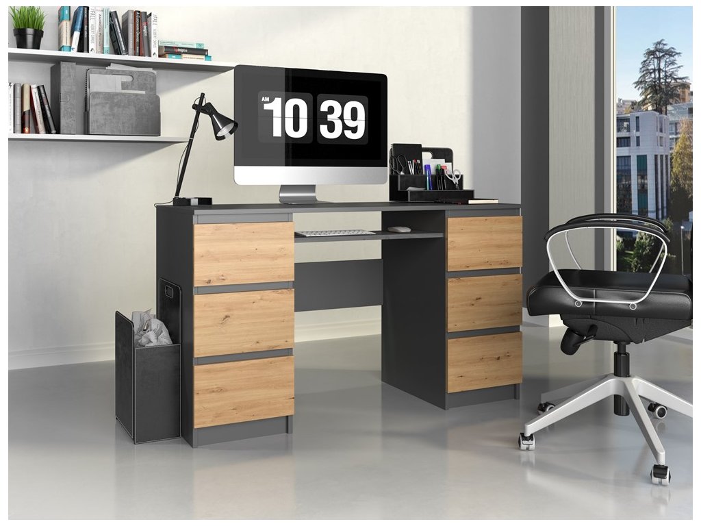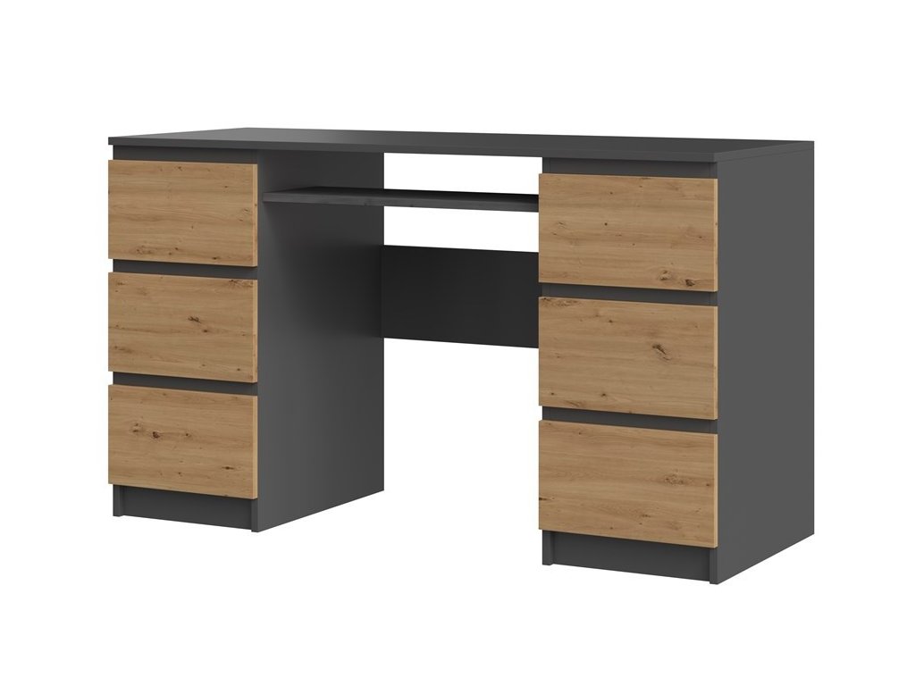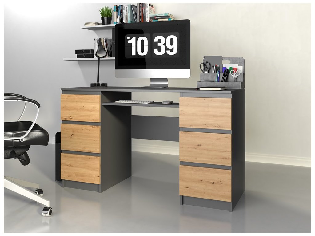 Funkční psací stůl Kima v jednoduchém a moderním designu poskytuje dostatečnou pracovní plochu a díky prostorným zásuvkám také spoustu úložného prostoru. Bezúchytková čela zásuvek zajistí pohodlné používání. Stůl je vyrobený ze snadno udržovatelného lamina, hrany jsou zakončené vysoce odolným ABS materiálem.