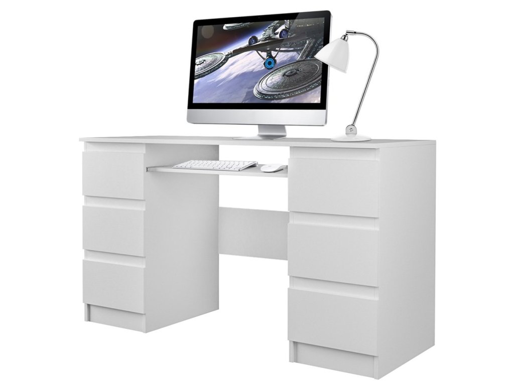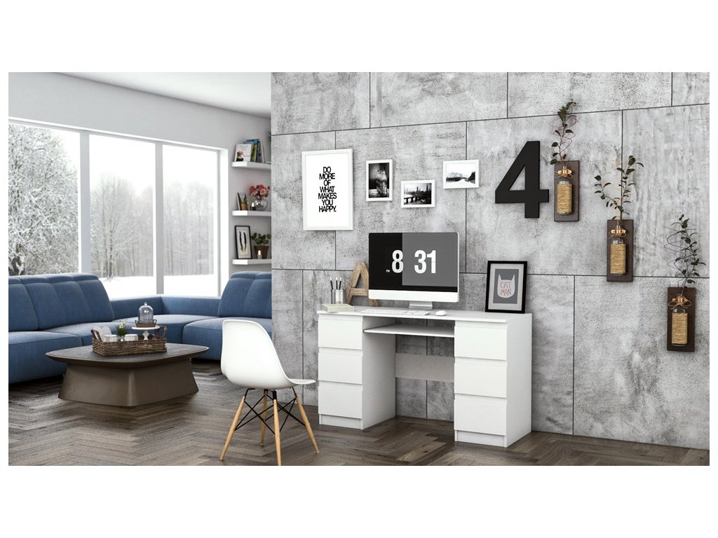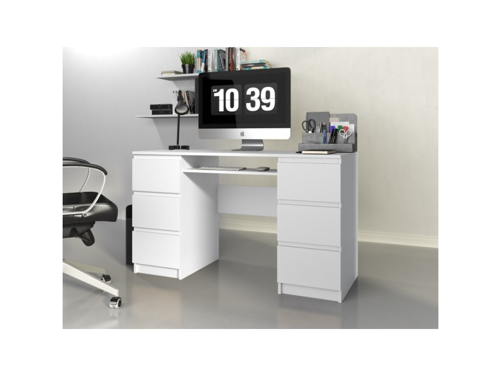Funkční psací stůl Kima v jednoduchém a moderním designu poskytuje dostatečnou pracovní plochu a díky prostorným zásuvkám také spoustu úložného prostoru. Bezúchytková čela zásuvek zajistí pohodlné používání. Stůl je vyrobený ze snadno udržovatelného lamina, hrany jsou zakončené vysoce odolným ABS materiálem.