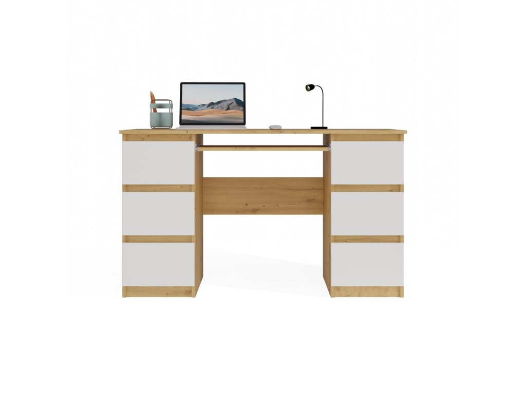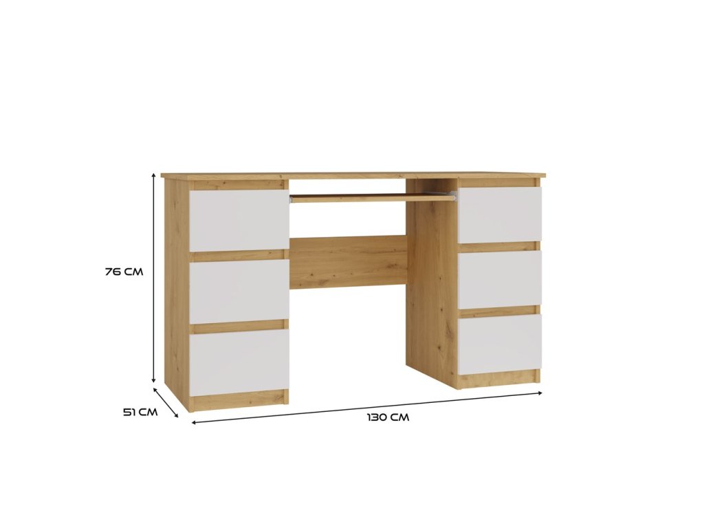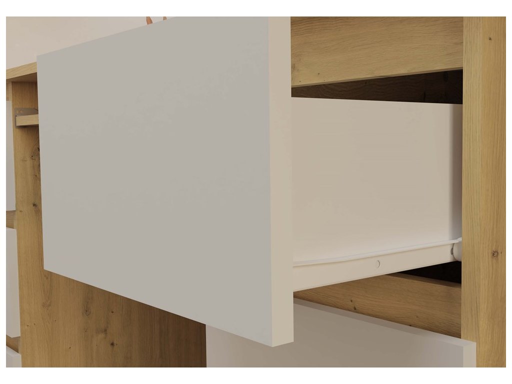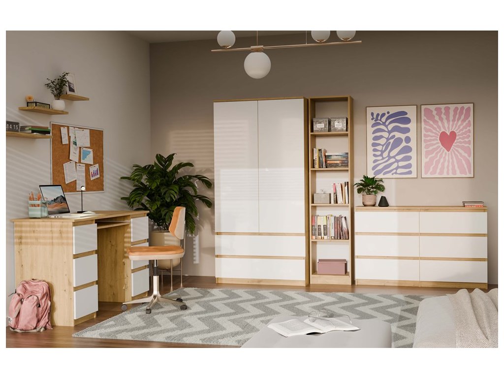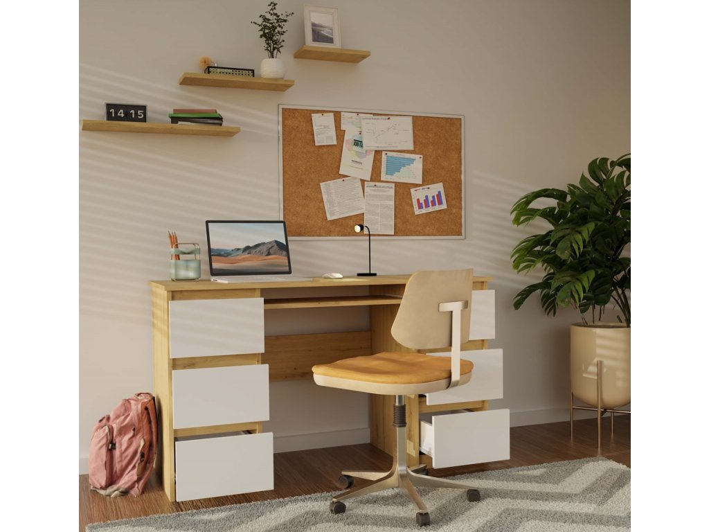 Funkční psací stůl Kima v jednoduchém a moderním designu poskytuje dostatečnou pracovní plochu a díky prostorným zásuvkám také spoustu úložného prostoru. Bezúchytková čela zásuvek zajistí pohodlné používání. Stůl je vyrobený ze snadno udržovatelného lamina, hrany jsou zakončené vysoce odolným ABS materiálem.