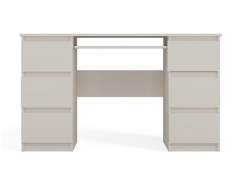 Funkční psací stůl Kima v jednoduchém a moderním designu poskytuje dostatečnou pracovní plochu a díky prostorným zásuvkám také spoustu úložného prostoru. Bezúchytková čela zásuvek zajistí pohodlné používání. Stůl je vyrobený ze snadno udržovatelného lamina, hrany jsou zakončené vysoce odolným ABS materiálem.