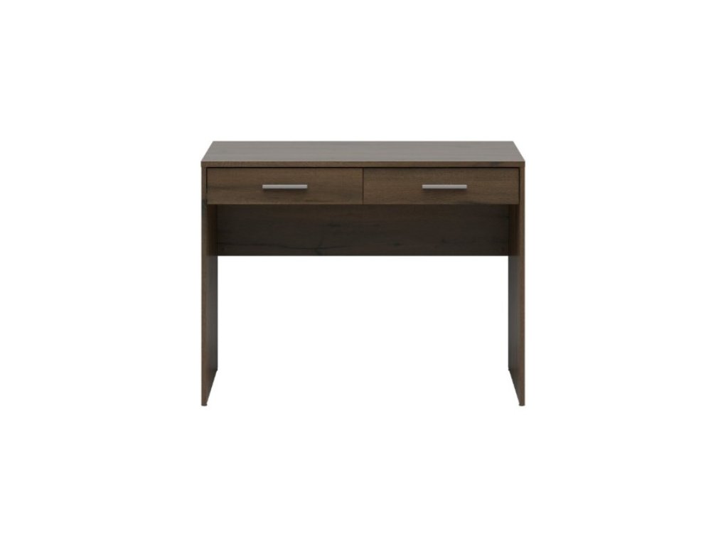 Nepo Plus Psací stůl BIU2S, dub ušlechtilý V žádném dětském či studentském pokoji by neměl chybět praktický psací stůl. Pokud bojujete s menším prostorem v místnosti, bude psací stůl Nepo Plus skvělým řešením. Psací stůl je vyrobený z 1,6 cm silného lamina v moderním černohnědém dekoru dub ušlechtilý. Dítě využije pracovní plochu o rozměru d.100 x š.59 cm i dvě zásuvky s vnitřními rozměry š.44 x h.40 x v.8 cm. Ke snadné manipulaci zásuvek slouží kovové pojezdy a stříbrné úchytky z tvrzeného plastu. Prostor pro židli je o rozměrech š.97 x v.61 x h.58 cm. Dodáváno v demontu.