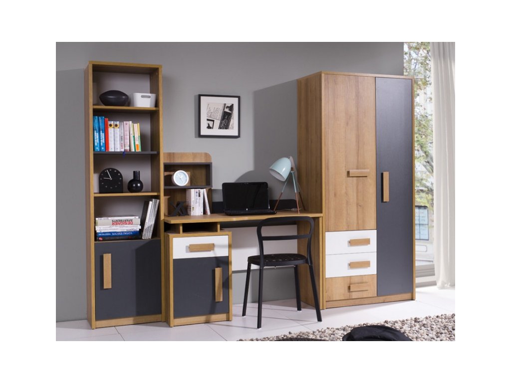 tento sektorový nábytek je vyráběn v atraktivních barvách. Dobře se hodí jak pro menší děti, tak i pro dospívající mládež. Pokud jej pořídíte již v útlém věku dítěte, zajisté mu vydrží až do ukončení studií. Barevné povedení je v kombinaci tří barev, zakládem je žádaná barva dub Riviera zlatý, která je doplněna barvou grafit a bílá barva krásně osvěžuje a dodává kolekci Quatro šmrc.