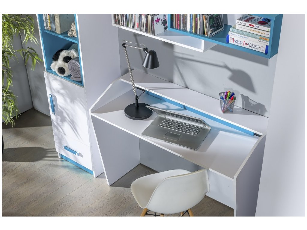 korpus: bílá + dvířka: bílá + dodatky: tyrkys