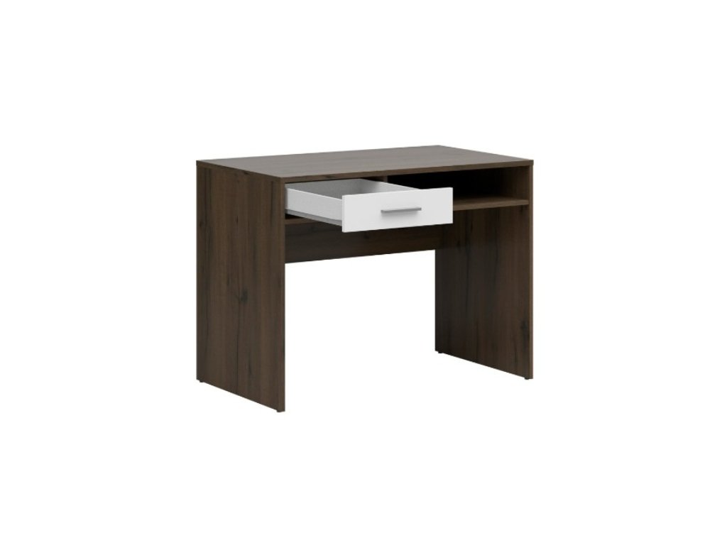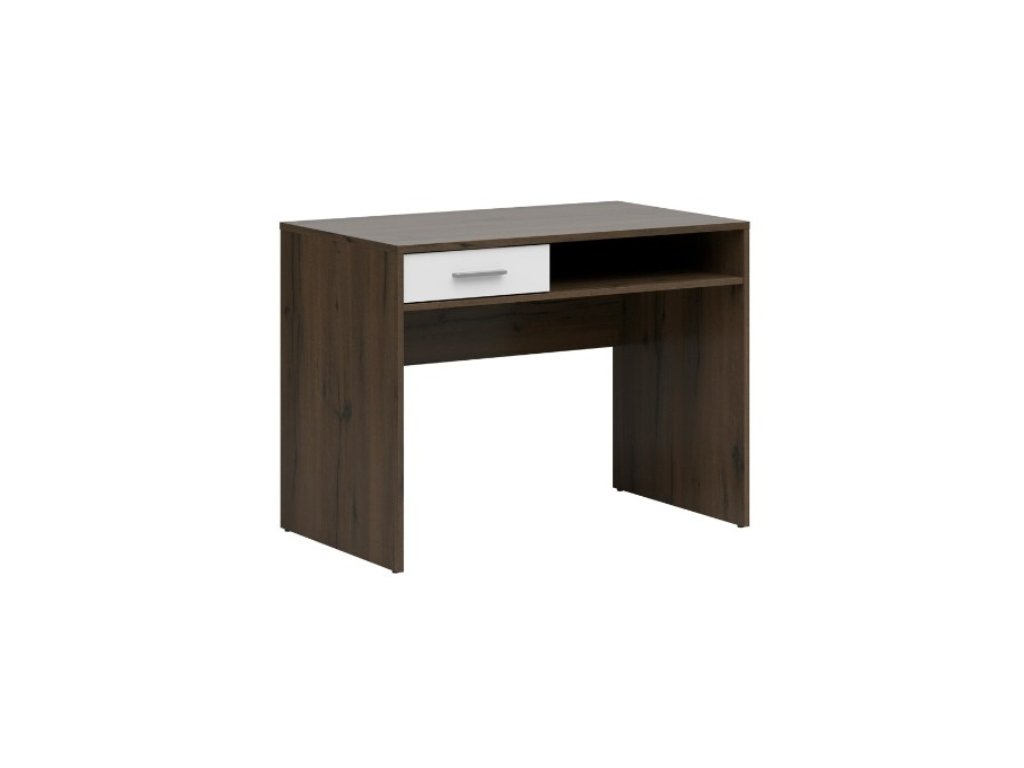 Nepo Plus Psací stůl BIU1S, dub ušlechtilý/bílá Toužíte po psacím stolu do pracovny, který by se vešel i do menších prostor a přitom by poskytl komfort při užívání? Máme pro vás řešení formou psacího stolu NEPO PLUS. Horní deska stolu je o skvělých rozměrech d.100 x š.59 cm. Jistě oceníte také praktickou zásuvku a prostornou polici. U police můžete využít úložný prostor o délce a výšce 56 x 12 cm. Údržba stolu je také snadná, vyroben je totiž z lamina, které se snadno čistí. Síla materiálu je 1,6 cm. Barva je v moderní a v poslední době velmi žádaném dekoru tmavě hnědý Dub ušlechtilý/bílá. Prostor pro židli je o rozměrech š.97 x v.61 x h.58 cm. Doručujeme v rozloženém stavu.