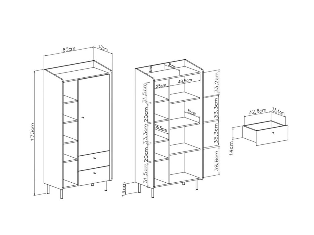šíře 80 cm, výška 170 cm, hloubka 42 cm