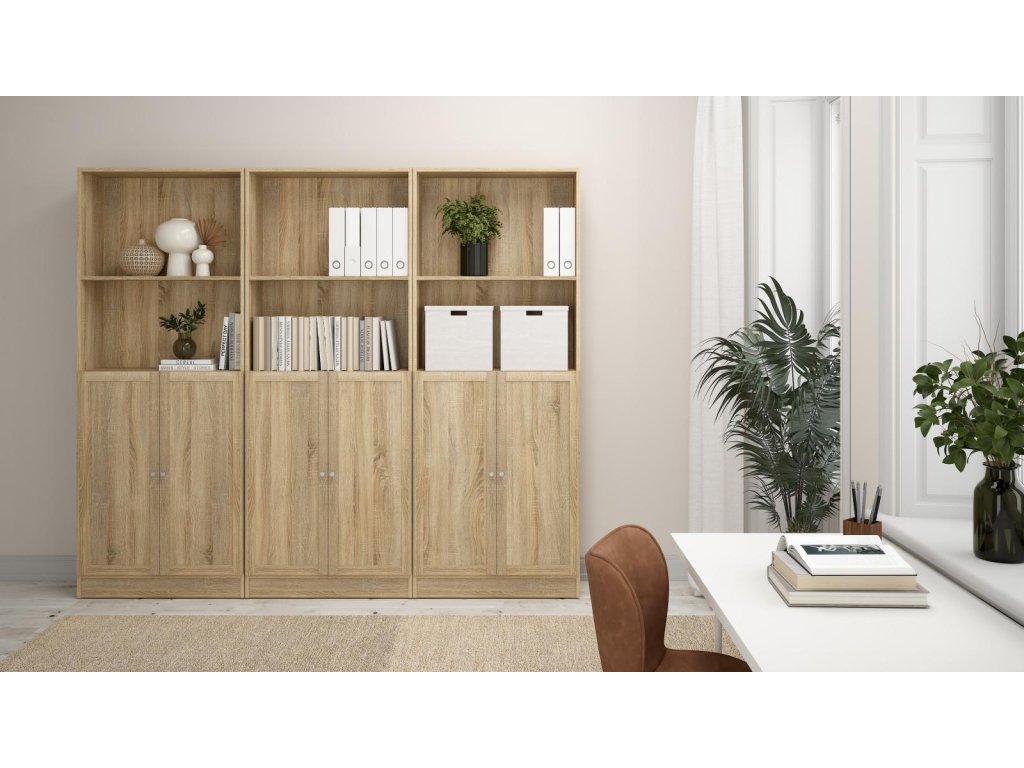 Nadčasová řada Bask nabízí nekonečně mnoho úložných řešení pro vaši kancelář, domácí pracovnu nebo studentský pokoj. Knihovny a kancelářské skřínky je možné doplnit dvířky v různých barvách, což vám umožní vytvořit si kancelář přesně podle vašich potřeb a přání. Sortiment této řady je vyrobený z odolného a snadno udržovatelného lamina.