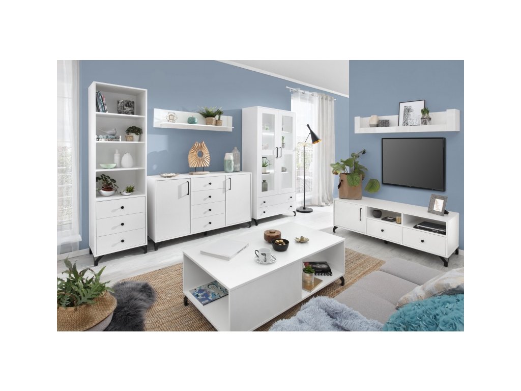 Sektorový nábytek Bergen je moderní řada nábytku na nožkách. Nábytek je vhodný jak do obývacího pokoje, tak i do dětského pokoje. Záleží jen na Vaši fantazii jak si poskládáte jednotlivé díly této řady. Moderní bílá barva doplněna černými úchyty a nožkami, která se velmi dobře hodí do jakéhokoliv interiéru.