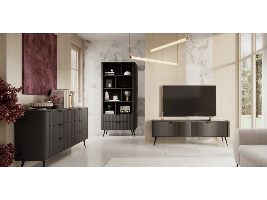 Sektor Lante je velmi moderní, elegantní a originální. Nábytek v černém provedení zapadne do jakéhokoliv interiéru, dobře se sladí s ostatními bytovými doplňky, jeho jednoduché a decentní provedení vnese do místnosti klid a pohodu. Zaoblené hrany nábytku i vkusně drážkovaná čela jsou naprostou harmonií v každém interiéru.