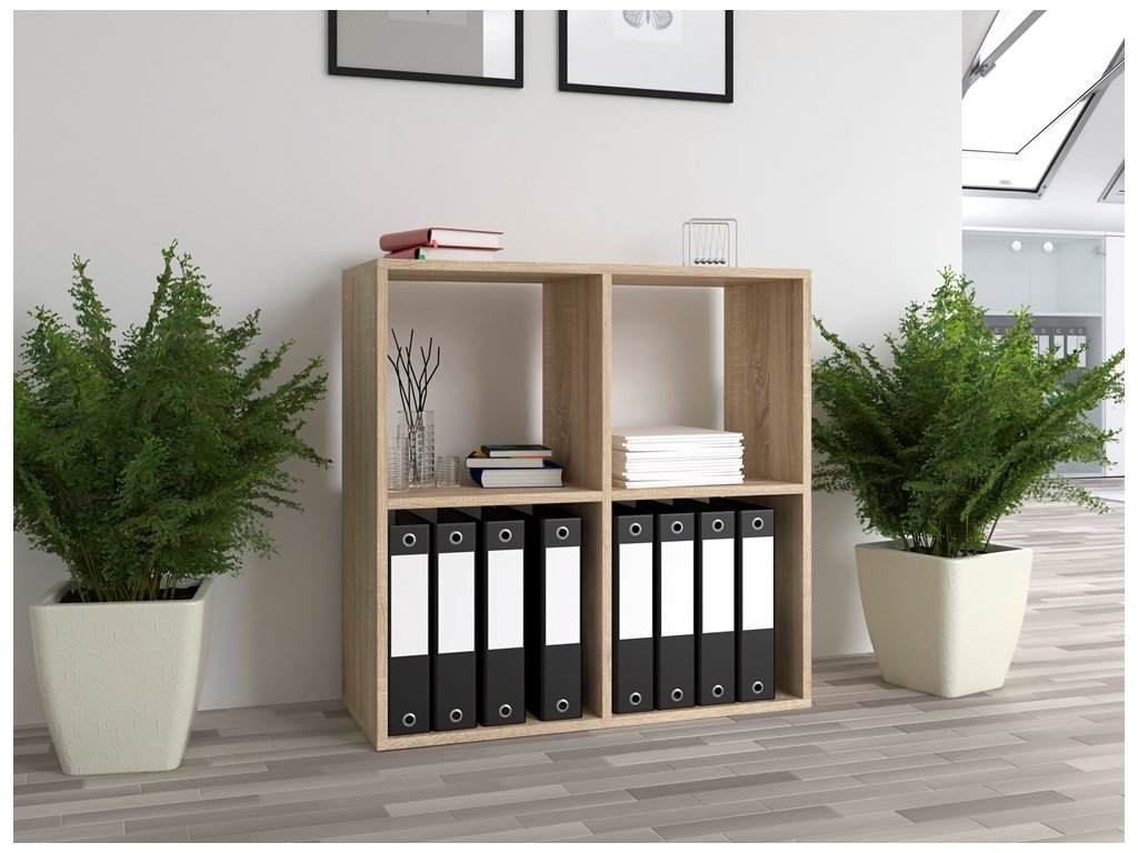 Nadčasový regál Manja se skvěle hodí do každé místnosti a je řešením pro ty, kteří oceňují minimalismus a pořádek. Jeho jednoduchý geometrický tvar umožňuje ukládat předměty uspořádaným a esteticky příjemným způsobem. Nábytek je vyrobený z laminované desky, hrany jsou povrchově upraveny ABS plastem - vyznačuje se vysokou mechanickou a chemickou odolností.