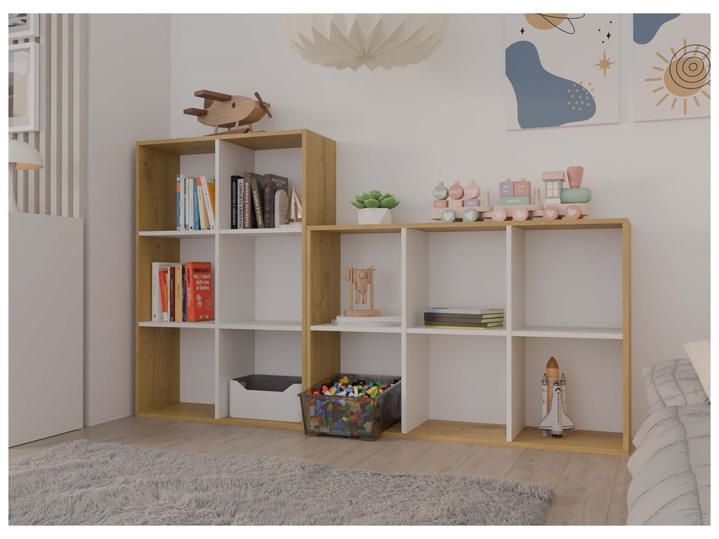Nadčasový regál Manja se skvěle hodí do každé místnosti a je řešením pro ty, kteří oceňují minimalismus a pořádek. Jeho jednoduchý geometrický tvar umožňuje ukládat předměty uspořádaným a esteticky příjemným způsobem. Nábytek je vyrobený z laminované desky, hrany jsou povrchově upraveny ABS plastem - vyznačuje se vysokou mechanickou a chemickou odolností.
