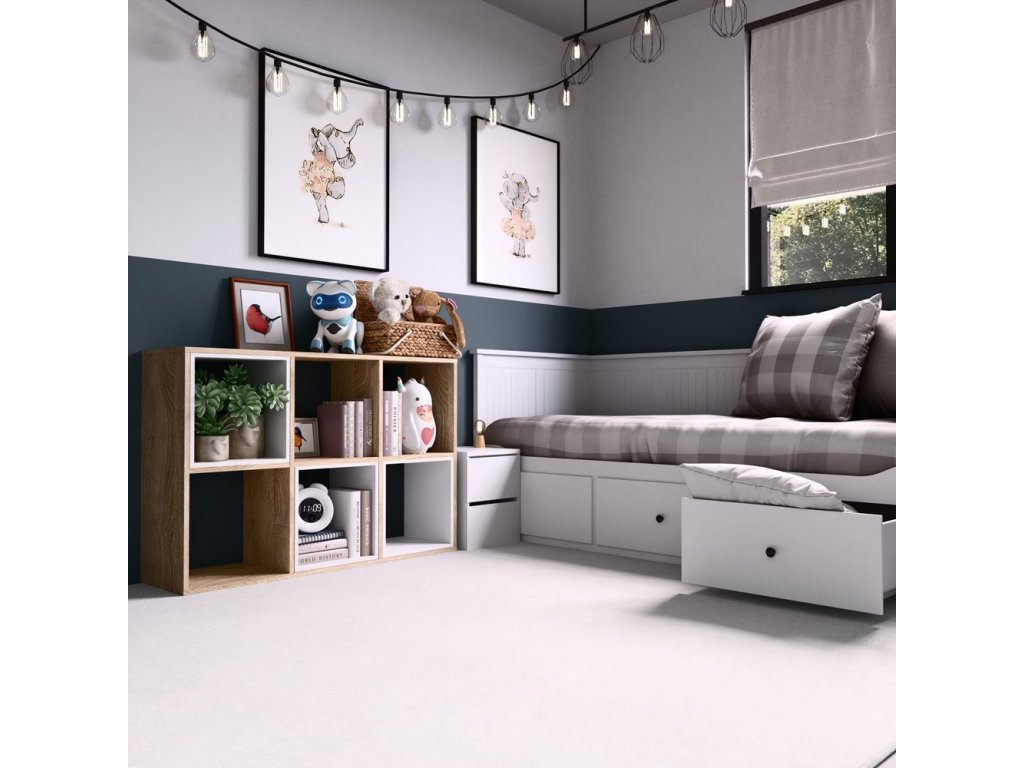 Nadčasový regál Manja se skvěle hodí do každé místnosti a je řešením pro ty, kteří oceňují minimalismus a pořádek. Jeho jednoduchý geometrický tvar umožňuje ukládat předměty uspořádaným a esteticky příjemným způsobem. Nábytek je vyrobený z laminované desky, hrany jsou povrchově upraveny ABS plastem - vyznačuje se vysokou mechanickou a chemickou odolností.