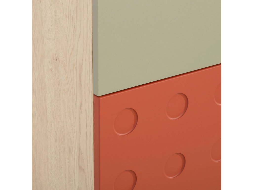 Kolekce vyniká svým velmi zajímavým barevným provedením, které Vás nadchne na první pohled. Čela jsou zdobena jemným kruhovým reliéfem, který zaujme především malé děti. Nábytek vnese do interiéru útulnou atmosféru a čistotu. Velmi dobře se kombinuje s ostatními bytovými doplňky a Vaše ratolesti se tak budou cítit příjemně a bezpečně, jak při hraní, učení nebo lenošení.