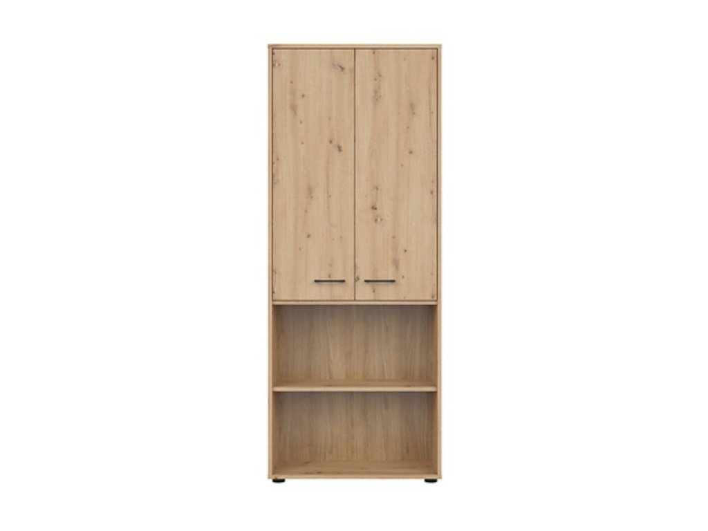 je praktický pro ukládání kancelářských dokumentů, či jej lze využít jako knihovnu, či pro vystavení upomínkových předmětů. Má otervřené police a jedny dvířka.