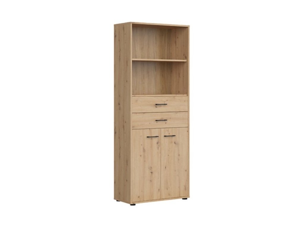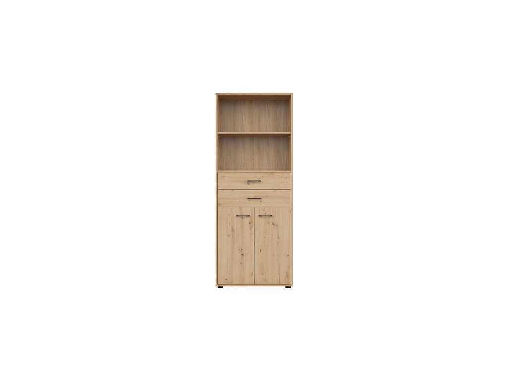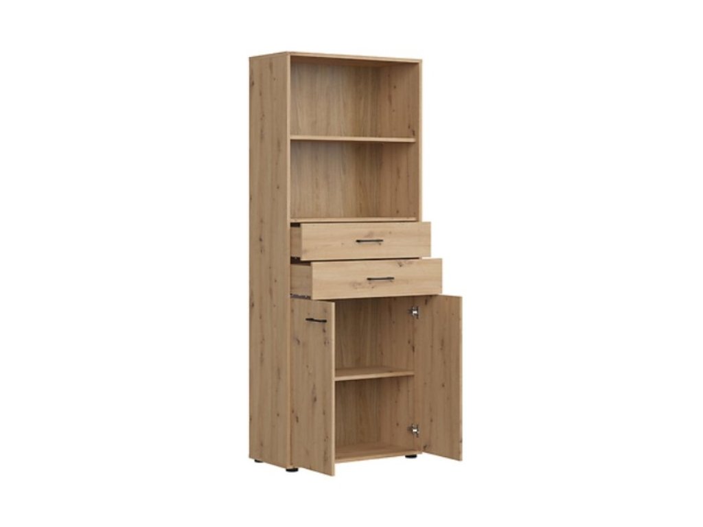 je praktický pro ukládání kancelářských dokumentů, či jej lze využít jako knihovnu, či pro vystavení upomínkových předmětů. Má otervřené police, 2 praktické zásuvky a jedny dvířka.
