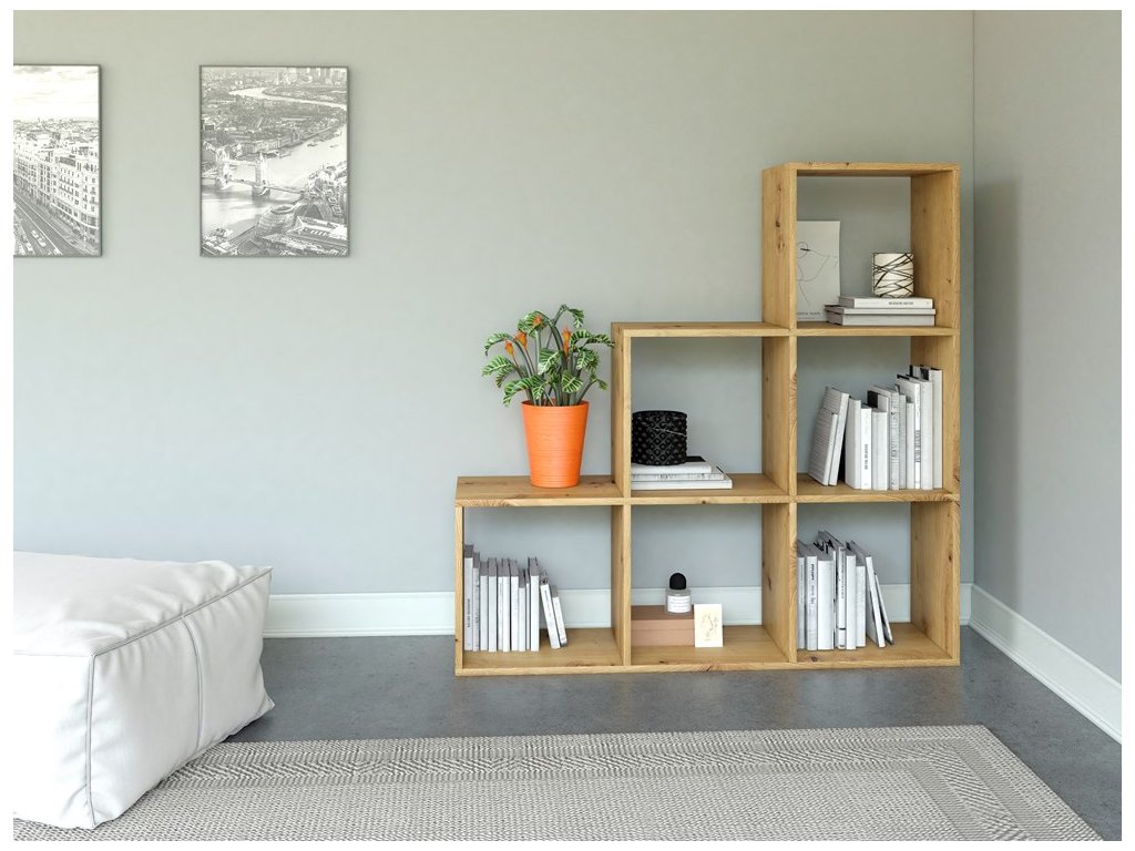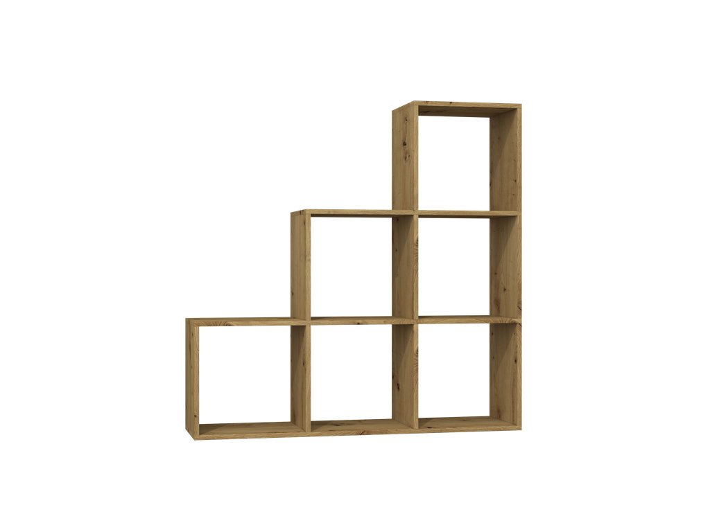Komorový regál Sven v jednoduchém designu, je řešením pro ty, kteří oceňují minimalismus a pořádek. Jeho asymetrický tvar je ideální pro moderní prostory, kde se počítá originalita a originální řešení. Regál může plnit mnoho funkcí – od typické knihovny, přes místo pro uložení dekorací, až po prvek rozdělení prostoru v místnosti. Nábytek je vyrobený z laminované desky, hrany jsou povrchově upraveny ABS plastem - vyznačuje se vysokou mechanickou a chemickou odolností.