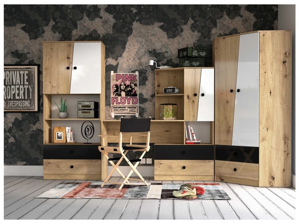 Moderní a praktický sektor Nero vynikne především jednoduchým a zajímavým provedením. Netradiční barevná kombinace dodá interiéru trendy vzhled a atraktivitu. Velký výběr dílů, díky kterým sestavíte dětský nebo studentský pokoj přesně na míru a podle představ Vašeho dítka. Nábytek se krásně sladí s ostatními bytovými doplňky a Vaše ratolesti se zde budou cítit dobře a bezpečně.