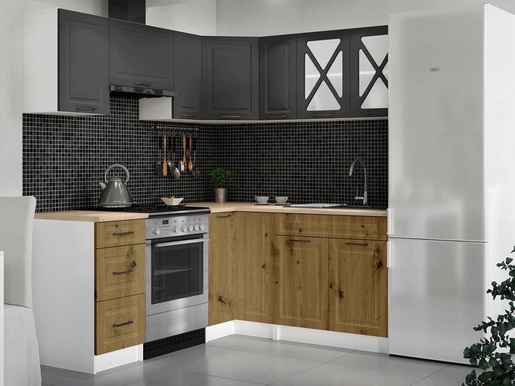 Rohová kuchyňská linka Astra grafit/artisan MAT
