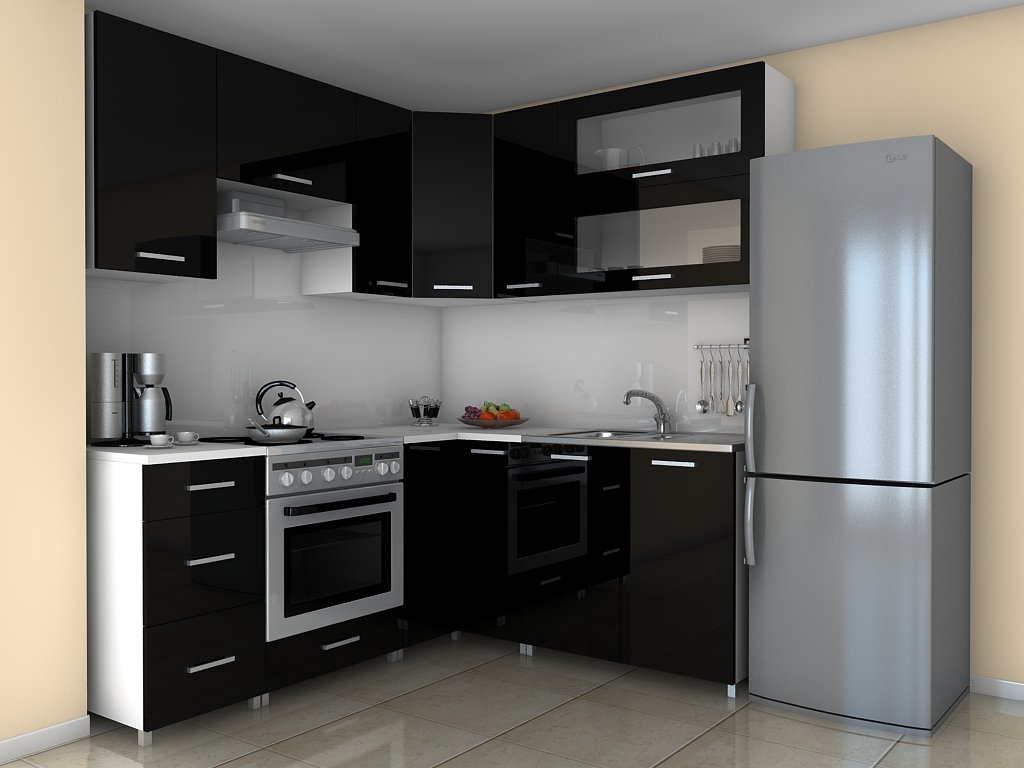 Rohová kuchyňská linka Grepolis MDR černý lesk