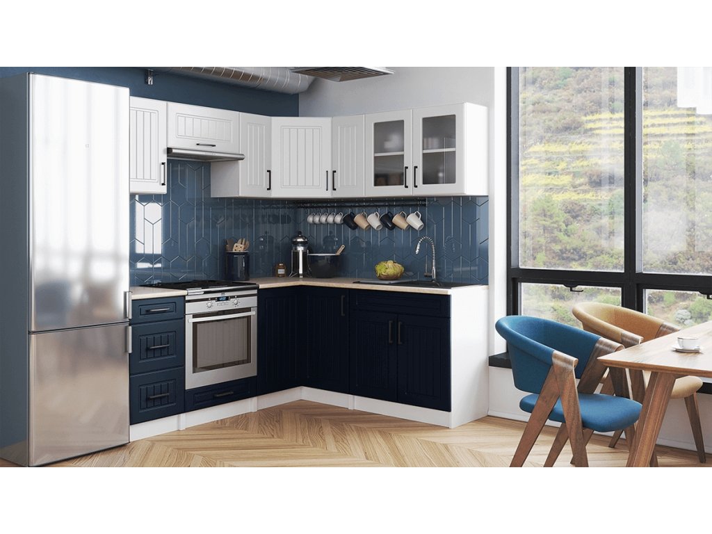 Rohová kuchyňská linka Romana bílá/tm.modrá MAT