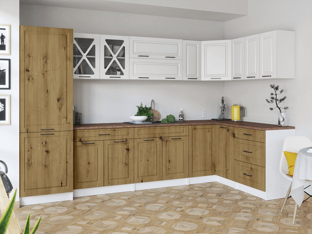 Rohová kuchyňská linka Simea bílá/artisan MAT