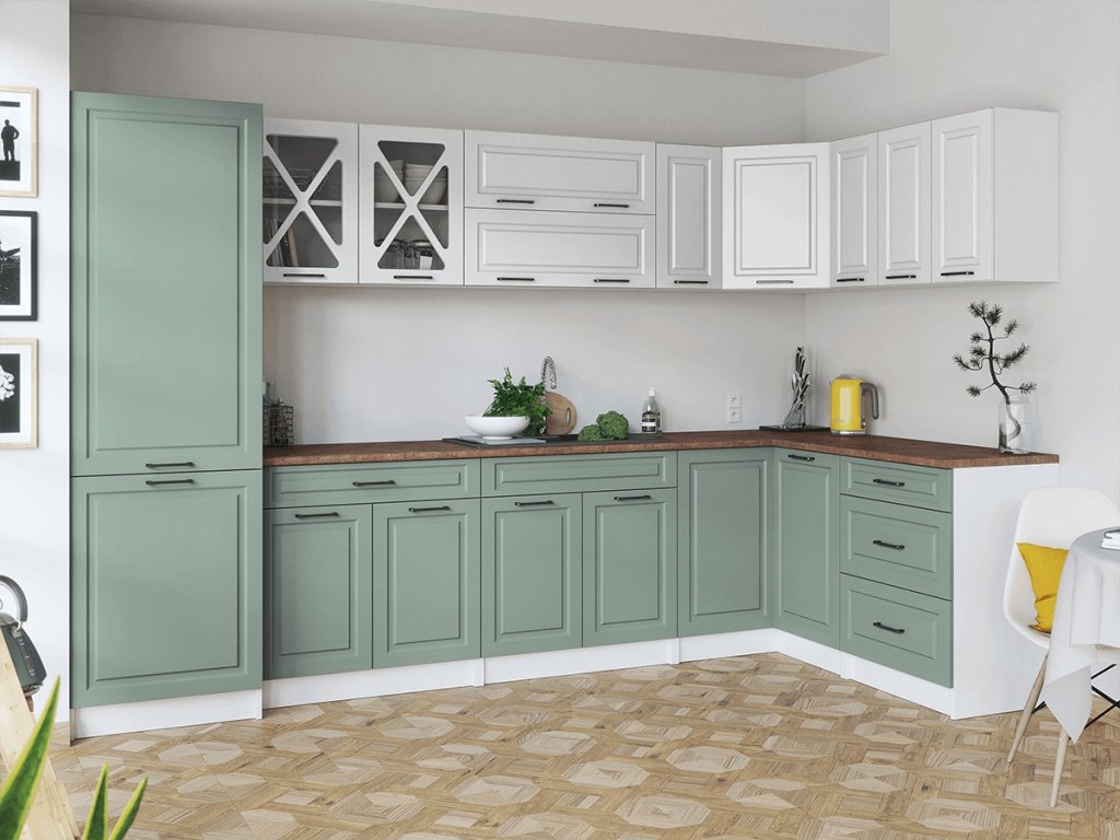 Rohová kuchyňská linka Simea bílá/sv.zelená