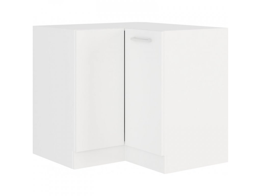Spodní rohová kuchyňská skříňka je vyrobena z lamina tloušťky 16 mm bílé barvy. Skříňka je vyrobena z kvalitních MDF desek a uvnitř najdete jednu polici. Dveře mají plastový nebo kovový úchyt, který můžete namontovat vertikálně či horizontálně (délka 140mm). Dále jsou vybavena systémem tichého zavírání a lze je sestavit jako pravé či jako levé. Poskládejte si z naší bohaté nabídky skříněk moderní a designovou kuchyň podle Vašich představ. Skříňka je dodávaná v demontu. Součástí je montážní plánek včetně všech potřebných spojovacích materiálů.