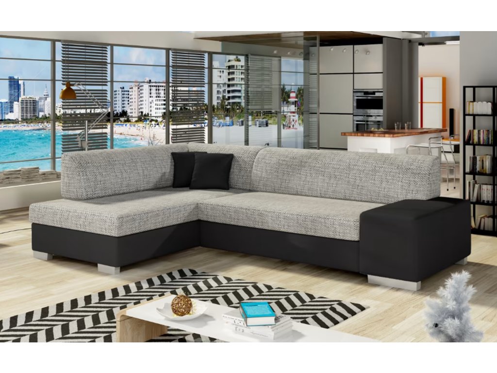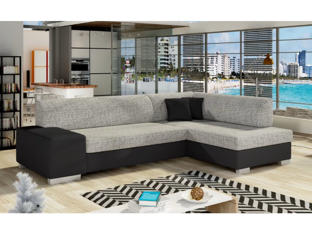 Stylová, multifunkční rohová sedací souprava se stabilní konstrukcí ve tvaru L. Maximální pohodlí zaručí pěna, ze které je sedák vyroben. Vlnová pružina v kombinaci s pěnou T30 na jedné straně zaručuje, že nevzniknou žádné deformace a nevzhledné prohlubně a na druhé straně správné držení těla během odpočinku. Při výběru rohové sedací soupravy Fabio stojí za pozornost její geometrický, newyorský design, stylové dekorační polštáře, které jsou součástí dodávky.