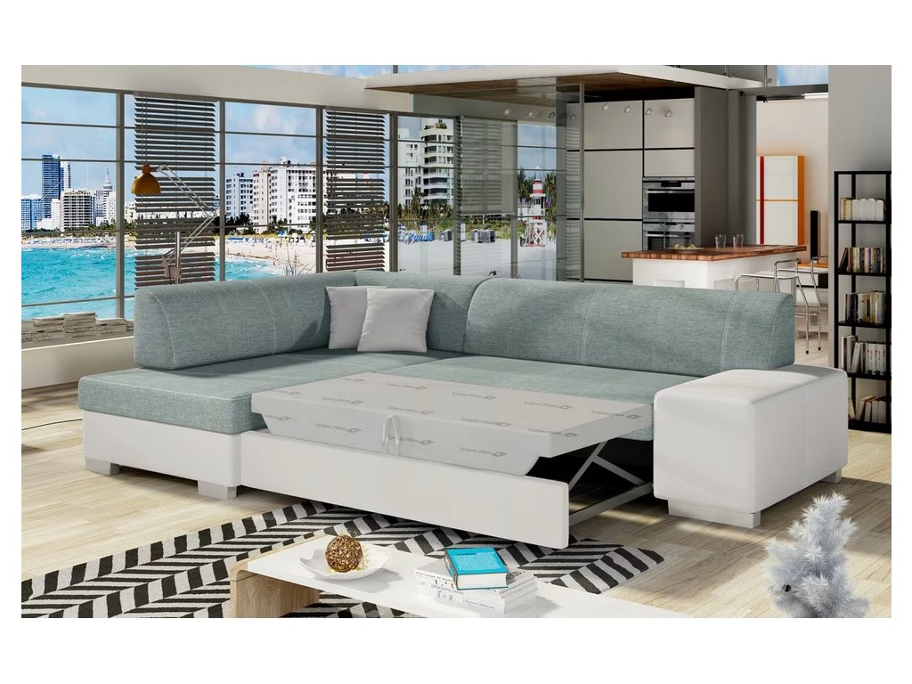 Stylová, multifunkční rohová sedací souprava se stabilní konstrukcí ve tvaru L. Maximální pohodlí zaručí pěna, ze které je sedák vyroben. Vlnová pružina v kombinaci s pěnou T30 na jedné straně zaručuje, že nevzniknou žádné deformace a nevzhledné prohlubně a na druhé straně správné držení těla během odpočinku. Při výběru rohové sedací soupravy Fabio stojí za pozornost její geometrický, newyorský design, stylové dekorační polštáře, které jsou součástí dodávky.