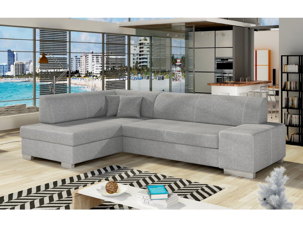 Stylová, multifunkční rohová sedací souprava se stabilní konstrukcí ve tvaru L. Maximální pohodlí zaručí pěna, ze které je sedák vyroben. Vlnová pružina v kombinaci s pěnou T30 na jedné straně zaručuje, že nevzniknou žádné deformace a nevzhledné prohlubně a na druhé straně správné držení těla během odpočinku. Při výběru rohové sedací soupravy Fabio stojí za pozornost její geometrický, newyorský design, stylové dekorační polštáře, které jsou součástí dodávky.