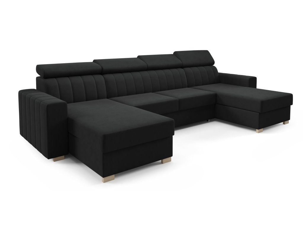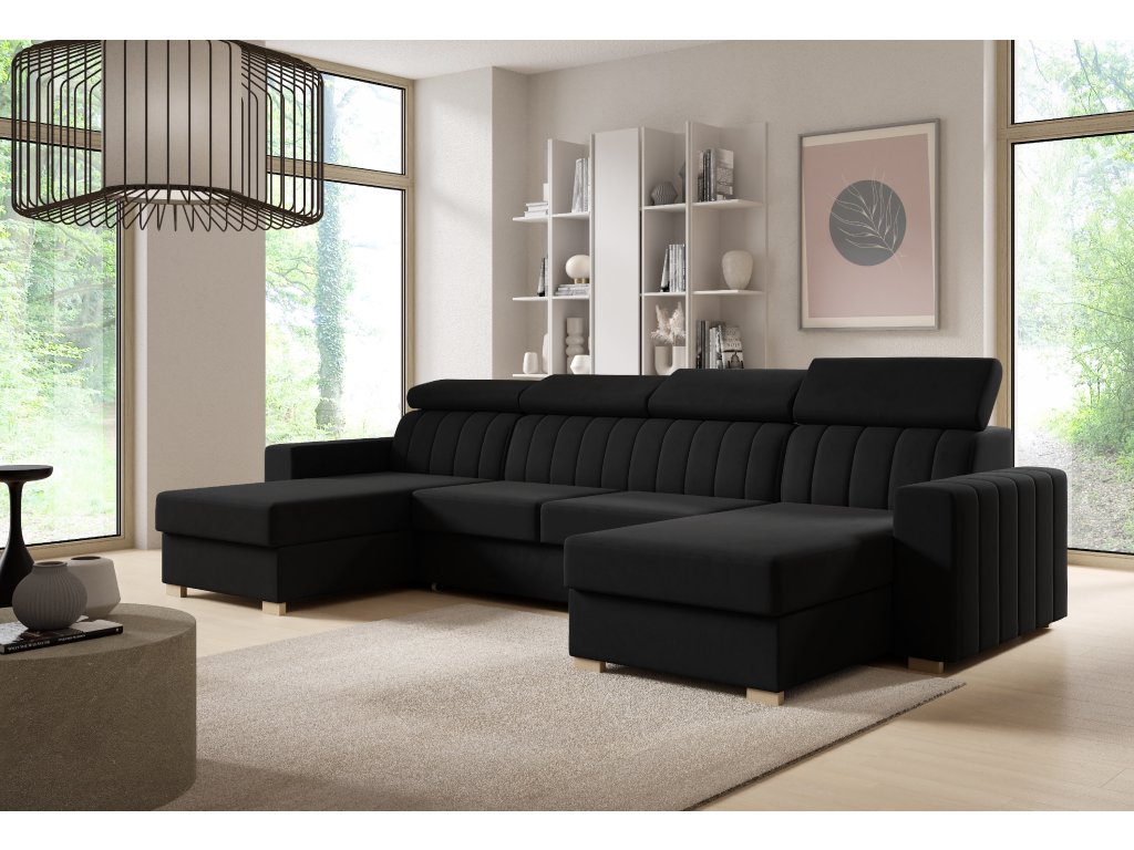 Moderní sedací souprava ve tvaru U zaujme svým zpracováním. Krásné vertikální pošití opěradel a boků zajišťuje vysokou atraktivnost sedačky. Nastavitelné opěrky hlavy zvyšují konformní posezení.