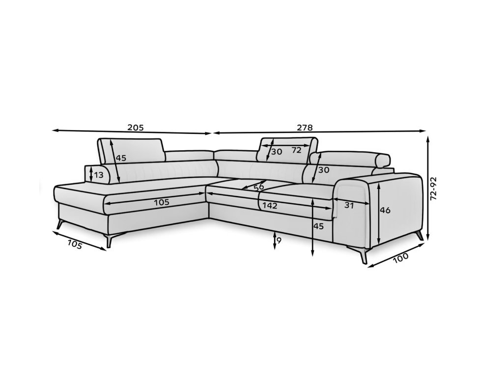 Rohová sedací souprava má zajímavý design, je stylová, elegantní. Krásné prošívání a ocelové nohy jsou velmi atraktivní. Sedací souprava je i velmi pohodlná. Lze ji rozložit na lůžko, což velmi ocení návštěva. Úložný prostor poslouží k uložení lůžkovin.