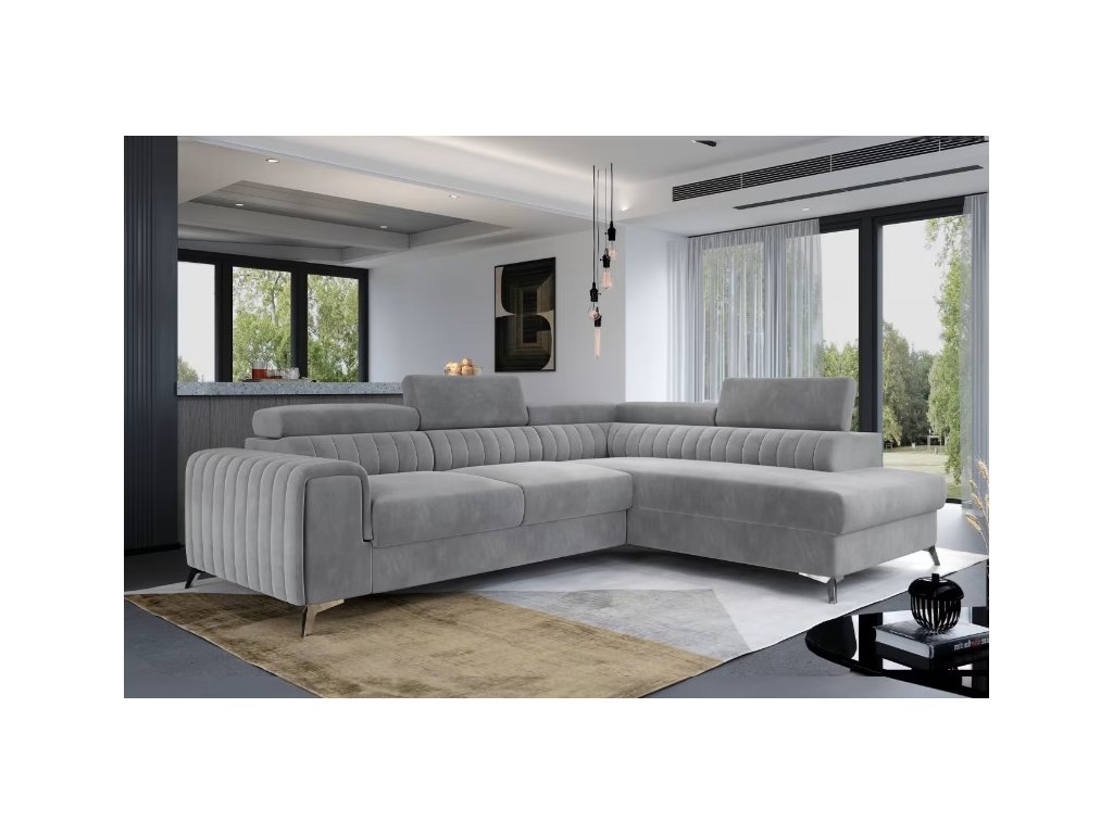 Rohová sedací souprava má zajímavý design, je stylová, elegantní. Krásné prošívání a ocelové nohy jsou velmi atraktivní. Sedací souprava je i velmi pohodlná. Lze ji rozložit na lůžko, což velmi ocení návštěva. Úložný prostor poslouží k uložení lůžkovin.