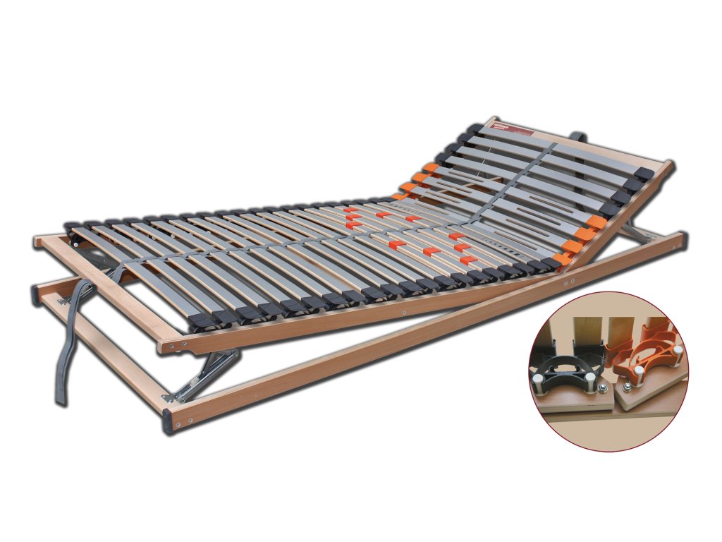 Lamelový rošt s polohováním hlavy a nohou s 28 lamelami uložených v kaučukových pouzdrech. Uložení pouzder nad bočnicí roštu zaručuje vyšší nosnost a dobrou odolnost proti jednorázovému zatížení. Snadnou manipulaci umožňují úchyty na obou koncích roštu. Pevná část roštu mezi polohováním hlavy a nohou nabízí větší plochu pro oporu beder. V oblasti ramen jsou lamely podélně prořezány pro větší pružnost a komfortnější spánek na boku. Rošt má různé úrovně polohování podle potřeb uživatele. Rošt má speciální fóliovou úpravu ke snadné údržbě. Celková výška roštu je 8 cm. Nosnost roštu je do 130 kg.