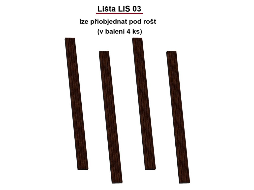 Potřeba dokoupit lišty LIS 03 Blanco pro připevnění roštu - lze je objednat níže.