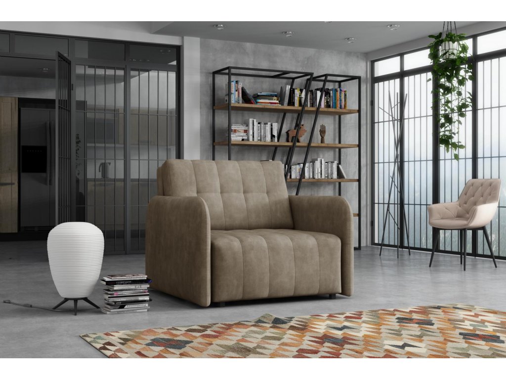 Rozkládací křeslo Vivian je vhodné do dětského, studentského, nebo hostinského pokoje. Jednoduchým rozložením pomocí automatu, získáte lůžko k příležitostnému přespání Vaší návštěvy, nebo kamaráda Vašich dětí. Výplň sedáku tvoří vlnité pružiny v kombinaci s PUR pěnou. Křeslo je potaženo kvalitní látkou s výběrem několika trendy odstínů a velmi elegantním prošíváním. Křeslo disponuje i nepostradatelným úložným prostorem, který využijete např. na deku a polštář. Ostatní vyobrazené doplňky a dekorace nejsou v ceně.