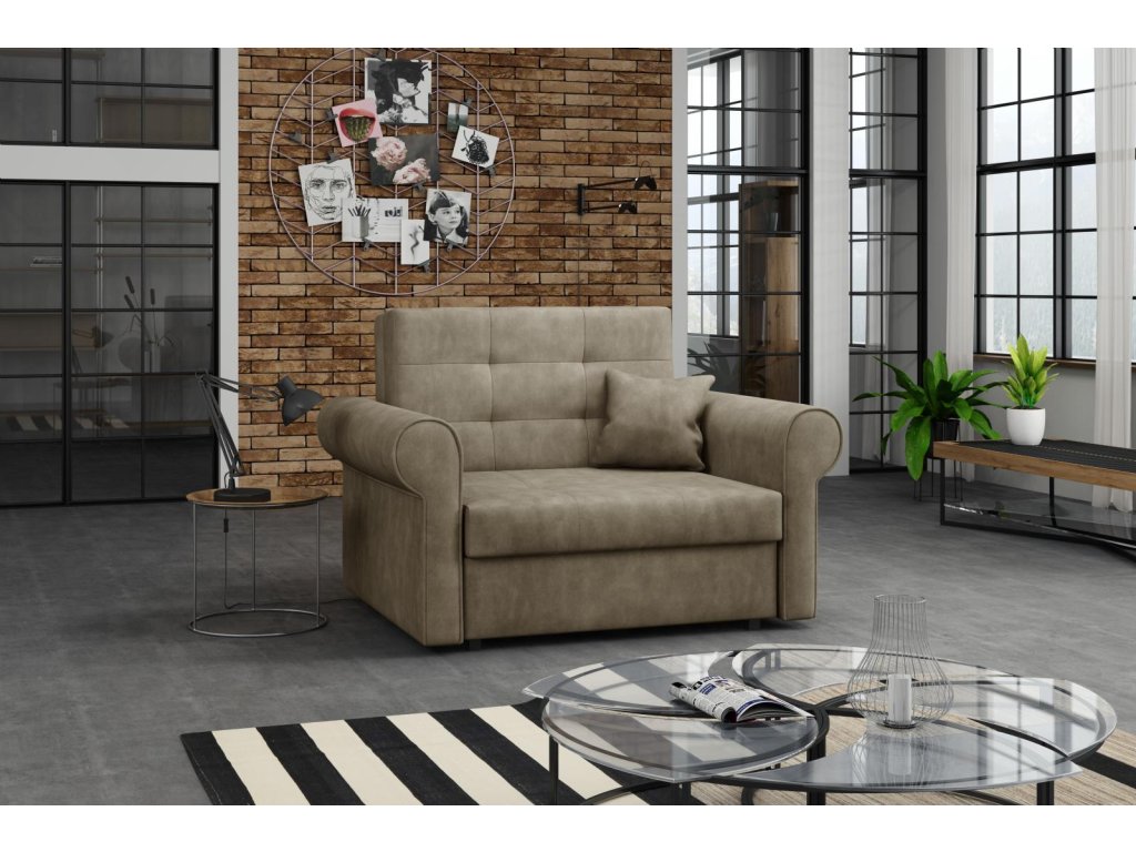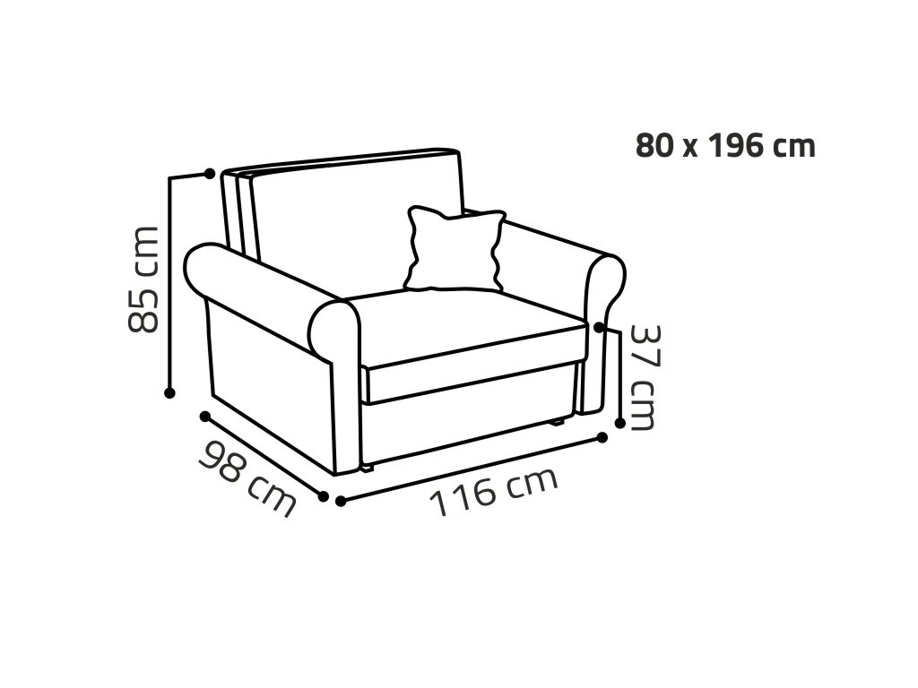 Rozkládací křeslo Vivian je vhodné do dětského, studentského, nebo hostinského pokoje. Jednoduchým rozložením pomocí automatu, získáte lůžko k příležitostnému přespání Vaší návštěvy, nebo kamaráda Vašich dětí. Výplň sedáku tvoří vlnité pružiny v kombinaci s PUR pěnou. Křeslo je potaženo kvalitní látkou s výběrem v několika trendy odstínů. Křeslo disponuje i nepostradatelným úložným prostorem, který využijete např. na deku a polštář. V ceně křesla je 1 dekorační polštářek. Ostatní vyobrazené doplňky a dekorace nejsou v ceně.