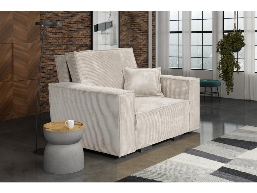 Rozkládací křeslo je vhodné do dětského, studentského, nebo hostinského pokoje. Jednoduchým rozložením pomocí automatu, získáte lůžko k příležitostnému přespání Vaší návštěvy, nebo kamaráda Vašich dětí. Výplň sedáku tvoří vlnité pružiny v kombinaci s PUR pěnou. Křeslo je potaženo kvalitní látkou s výběrem několika trendy odstínů. Křeslo disponuje i nepostradatelným úložným prostorem, který využijete např. na deku a polštář. Ostatní vyobrazené doplňky a dekorace nejsou v ceně.