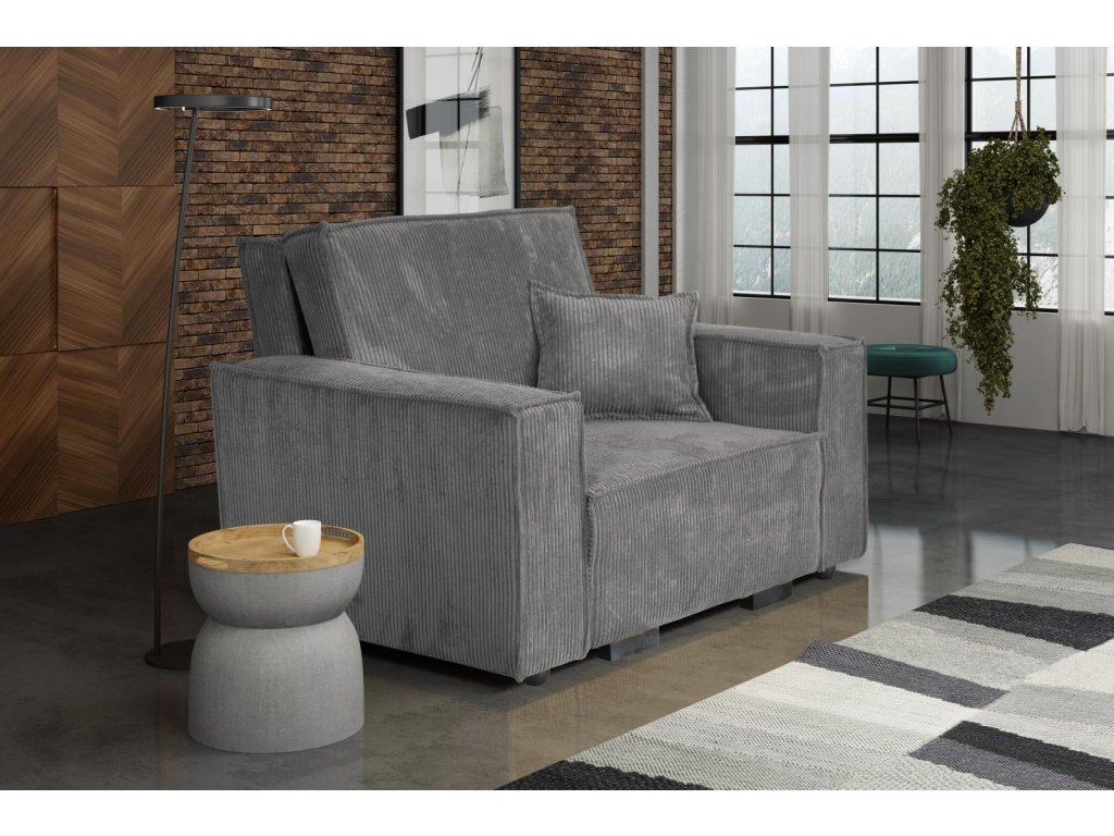 Rozkládací křeslo je vhodné do dětského, studentského, nebo hostinského pokoje. Jednoduchým rozložením pomocí automatu, získáte lůžko k příležitostnému přespání Vaší návštěvy, nebo kamaráda Vašich dětí. Výplň sedáku tvoří vlnité pružiny v kombinaci s PUR pěnou. Křeslo je potaženo kvalitní látkou s výběrem několika trendy odstínů. Křeslo disponuje i nepostradatelným úložným prostorem, který využijete např. na deku a polštář. Ostatní vyobrazené doplňky a dekorace nejsou v ceně.