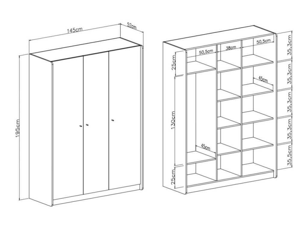 šíře 145 cm, výška 195 cm, hloubka 52 cm