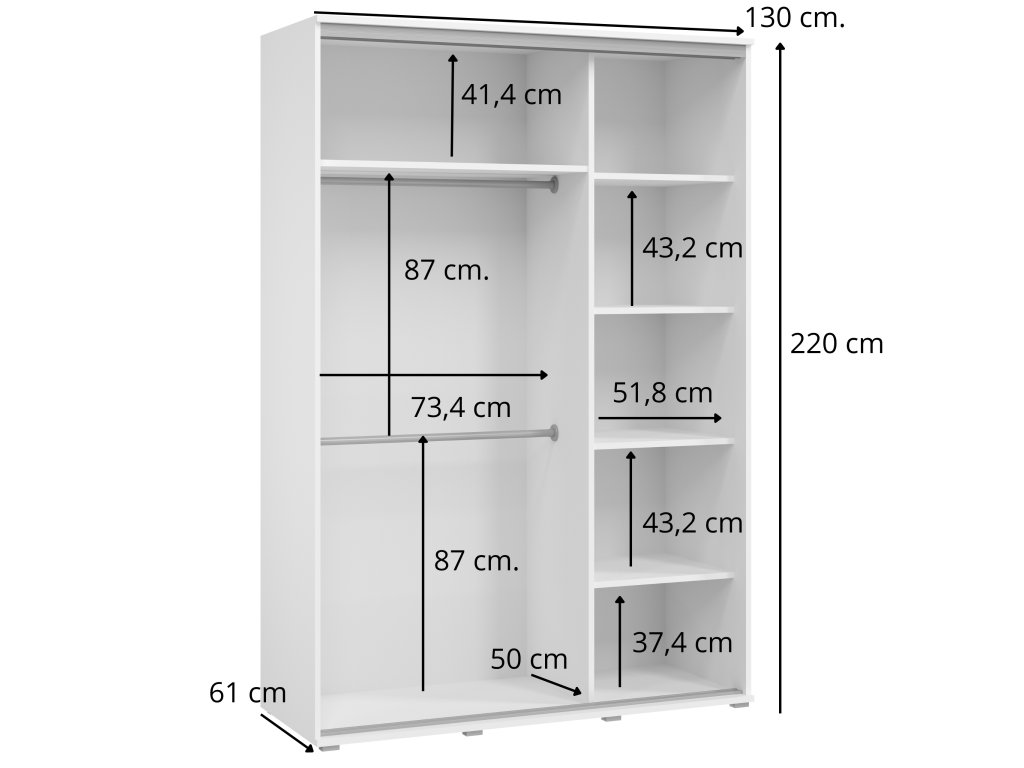 Šatní skříň Baryla 1 Alu šířka 130 cm, výška 220 cm, hloubka 61 cm