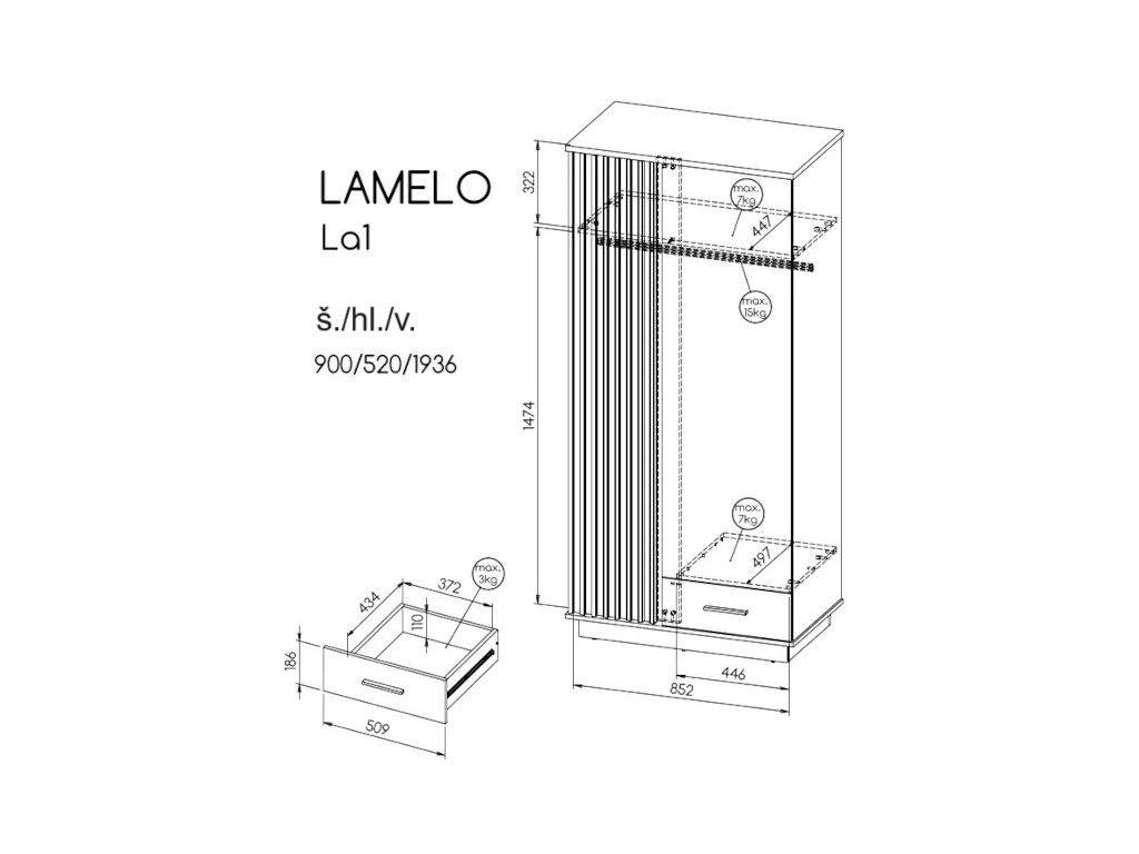 Šatní skříň Lamelo 90 LA1