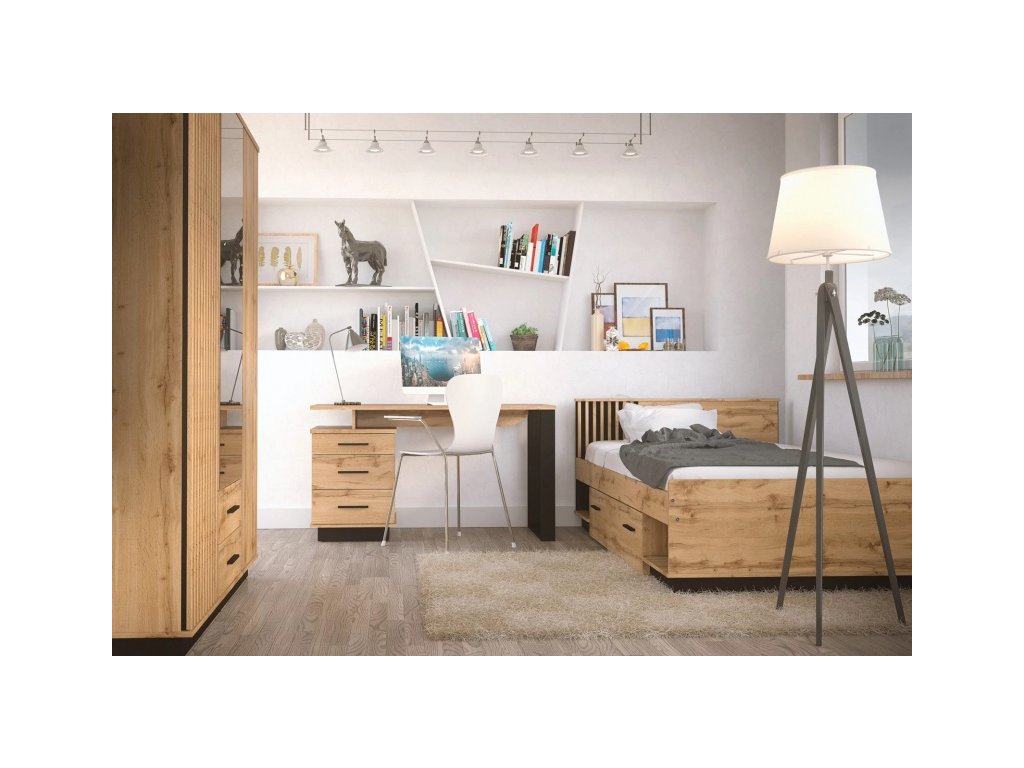 Elegantní sektor Lamelo vynikne především moderním a zajímavým provedením. Netradiční barevná kombinace dubu a černé dodá interiéru trendy vzhled. Nábytek je velmi praktický, atraktivní a zajímavý. Lamely dodávají nábytku dokonalý styl a kouzlo. Velký výběr dílů, díky kterým sestavíte obývací pokoj, ložnici nebo dětský/studentský pokoj.