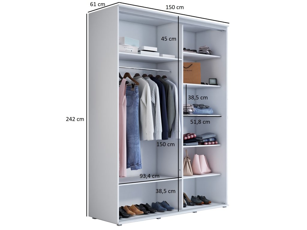 Šatní skříň Majda plus - šířka 150 cm, výška 242 cm